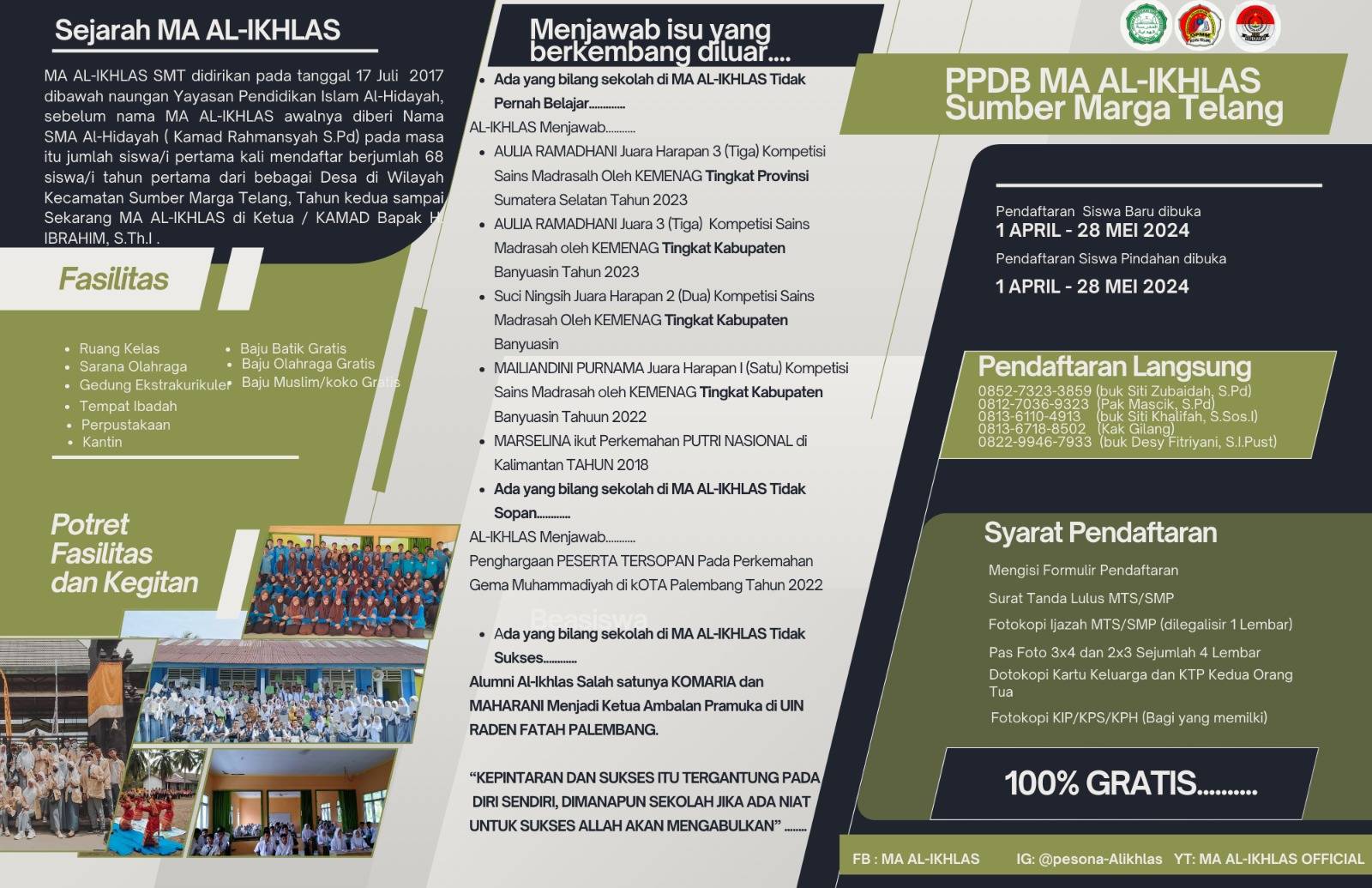 Segera bergabung dengan kami dan rasakan pengalaman belajar yang menyenangkan, bermakna, dan terarah. Jadilah bagian dari perjalanan pendidikan yang membanggakan di MAS Al-Ikhlas.